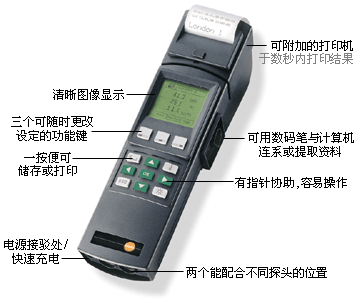 德圖testo 650溫濕度儀 | 訂貨號:0563 6501 | 簡要描述 | | testo 650標準溫濕度儀,包括電池,備用鋰電池和標定證書 | | 產(chǎn)品介紹: | testo 650可測量溫度、CO2、轉速、電流和電壓。同時也可用testo 650測量濕度和壓力。testo 650可升級至多功能測量儀testo 400。. 升級功能使其永遠能勝任您的測量任務。軟件升級功能確保您所使用永遠為最新科技。 實用功能: 計算莫勒圖中所有參數(shù): 相對濕度%RH、露點和壓力露點(td, tpd) 絕對濕度g/m³、干濕球溫度 濕度(g/kg)、水蒸氣壓力mbar/hPa 熱焓 kcal/kg 帶趨勢圖的水活性測量 大氣壓力 特殊優(yōu)點:自動糾正絕對壓力,確保測量精確。帶趨勢顯示的水活性測量,并自動辨識平衡。 清晰的圖線顯示 3個用戶自定義功能鍵 按鍵保存或打印 電源接口/快速充電 一體化打印機 現(xiàn)場快速打印 與PC進行數(shù)據(jù)傳輸 條碼筆 操作簡便 2個外接探頭插孔,自動辨識所連接的探頭 |