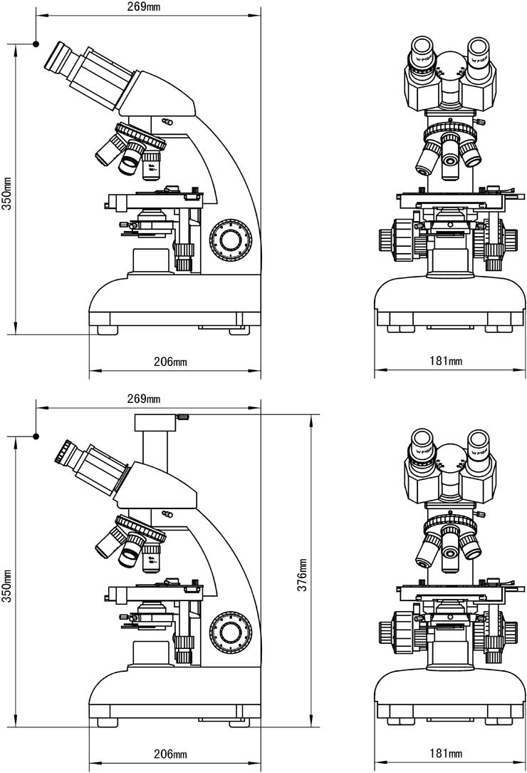 L1600系列生物顯微鏡外形尺寸: