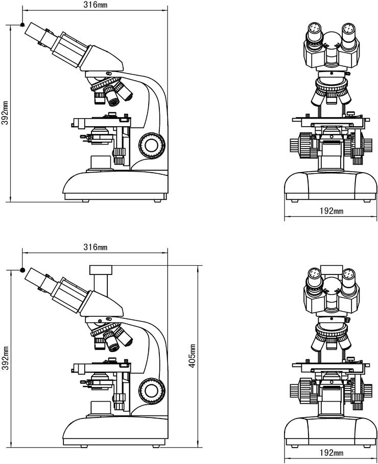 L1650系列生物顯微鏡外形尺寸: