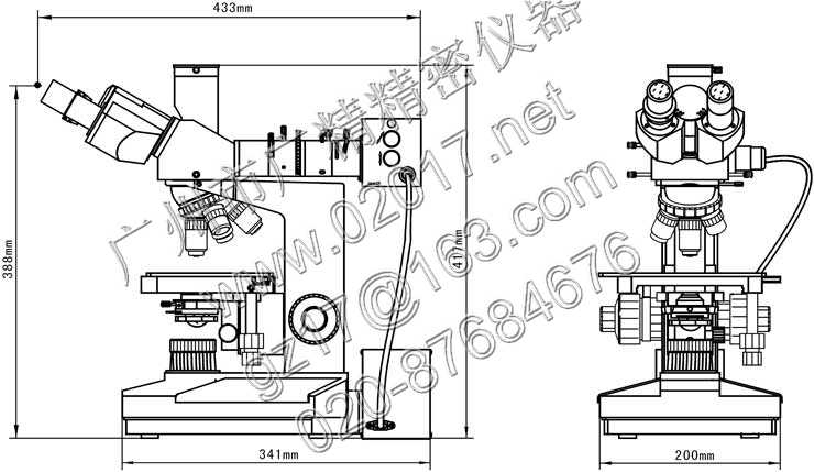 L2020透反射(雙色)正置金相顯微鏡外形尺寸: