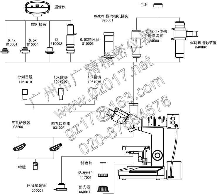 L2020透反射(雙色)正置金相顯微鏡選配件: 名稱 | 類別/技術(shù)參數(shù) | 編號 | 目鏡 | 大視野 WF16X(Φ11mm) | 1051016 | 分劃 10X(Φ18mm) 格值0.1mm/格 | 1121010 | 物鏡 | 長距平場消色差物鏡(無蓋玻片) PL L 50X/0.70 | 2250150 | 長距平場消色差物鏡(無蓋玻片) PL L 80X/0.80 | 2250180 | 長距平場消色差物鏡(無蓋玻片) PL L 100X/0.85 (彈簧) | 2250111 | 平場消色差物鏡(無蓋玻片) PL 100X/1.25 (彈簧,油) | 2240111 | CCD接頭 | 0.4X | 810001 | 0.5X | 810004 | 1X | 810002 | 0.5X帶分劃尺,格值0.1mm/格 | 810003 | 攝像儀 | DV-1帶USB和Video輸出 | 800001 | DV-2帶USB輸出 | 800003 | DV-3帶Video輸出 | 800005 | 攝影裝置 | 2.5X/4X變倍攝影裝置帶10X取景目鏡 | 840001 | 4X對焦攝影裝置 | 840002 | MD卡環(huán) | 840003 | PK卡環(huán) | 840004 | 數(shù)碼相機接頭 | CANON(A610,A620,A630,A640) | 820001 |