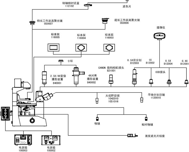 XDY-1倒置熒光顯微鏡選配件: 名稱 | 類別/技術(shù)參數(shù) | 編號 | 目鏡 | 大視野 WF16X(Φ11mm) | 1051016 | 分劃 10X(Φ20mm),格值0.1mm/格 | 1120010 | 聚光鏡 | 超長工作距離,帶濾色片座,工作距離:70mm | 050006 | 濾色片 | 黃濾色片 | 115003 | 熒光電源箱 | 100W 寬電壓恒功率熒光電源箱,帶計時器. | 100003 | 相襯裝置 | 轉(zhuǎn)軸相襯裝置 | 112102 | CCD接頭 | 0.4X | 812001 | 0.5X | 812004 | 1X | 812002 | 0.5X帶分劃尺,格值0.1mm/格 | 812003 | 攝像儀 | DV-1(帶USB和Video輸出) | 800001 | DV-2(帶USB輸出) | 800003 | DV-3(帶Video輸出) | 800005 | 數(shù)碼相機接頭 | CANON數(shù)碼相機接頭(A610,A620,A630,A640) | 821001 | 攝影裝置 | 2.5X/4X變倍攝影裝置帶10X取景目鏡 | 840001 | 4X對焦攝影裝置 | 840002 | MD卡環(huán) | 840003 | PK卡環(huán) | 840004 |